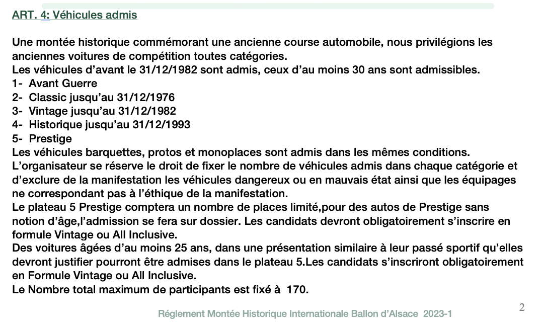 Voitures admises - Admissions